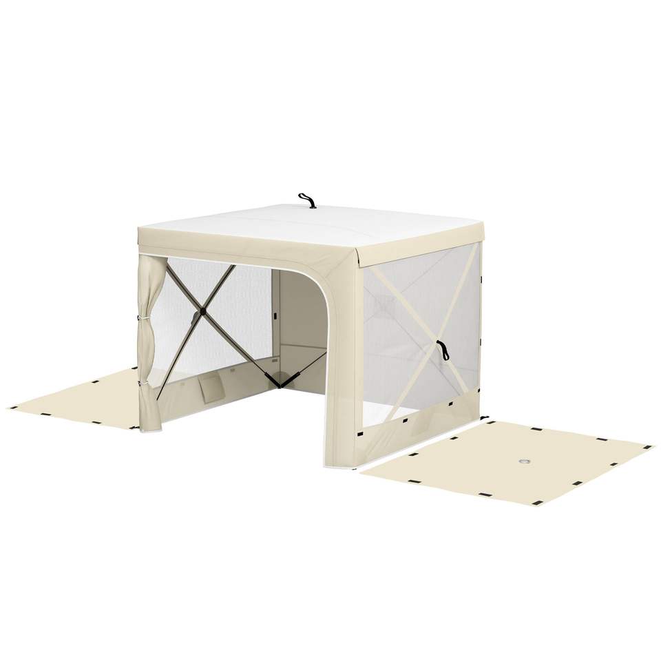 Tente pop-up résistante aux UV 7 x 8 avec rideaux, moustiquaires et sac de transport pour le camping, abri solaire