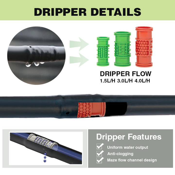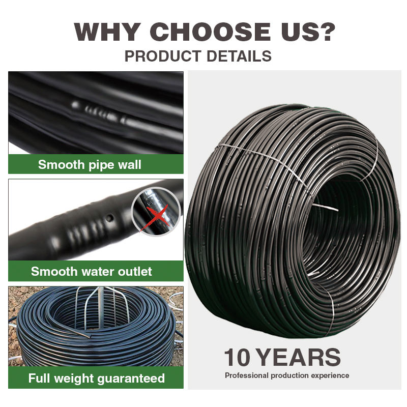 Tuyau d'irrigation goutte-à-goutte intégré résistant aux UV, diamètre 16 mm, débit 2/3 L, émetteurs en ligne, tuyau en plastique économiseur d'eau, rouleau de 500 m