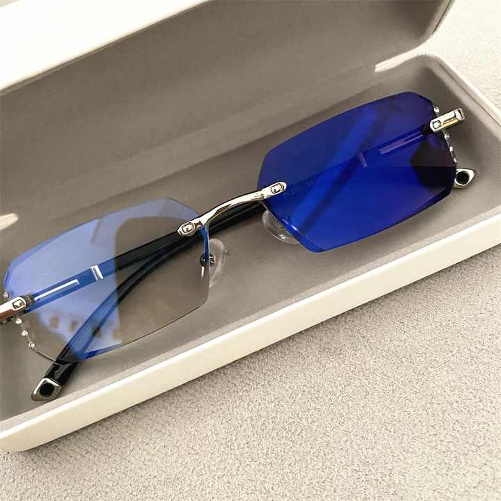 Lunettes photochromiques UV400 sans monture en TR90, forme rectangle polygonal, avec verres gris photochromiques, anti-lumière bleue, pour hommes et femmes