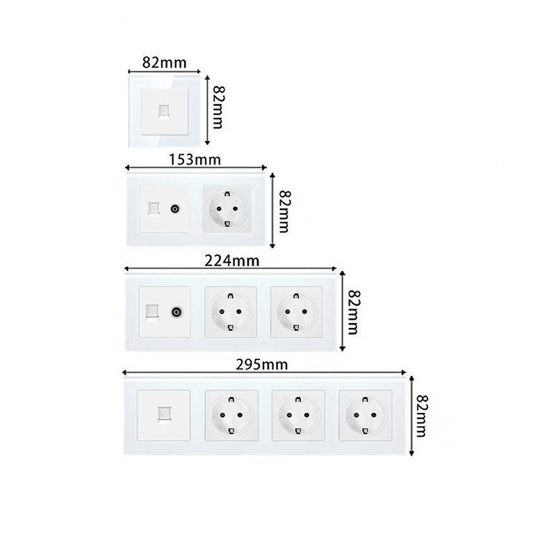 Prise murale Ubaro 82 mm avec panneau en verre trempé, prise téléphonique RJ45 pour usage domestique ou professionnel