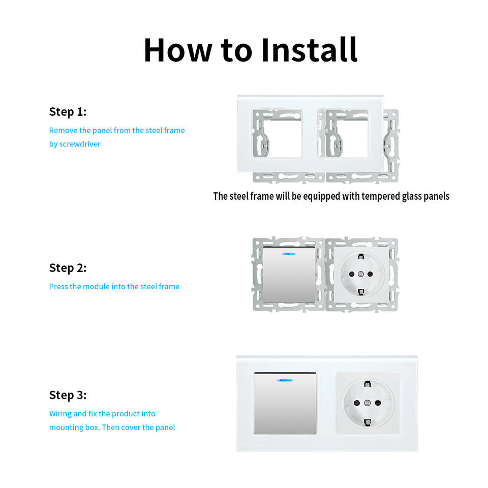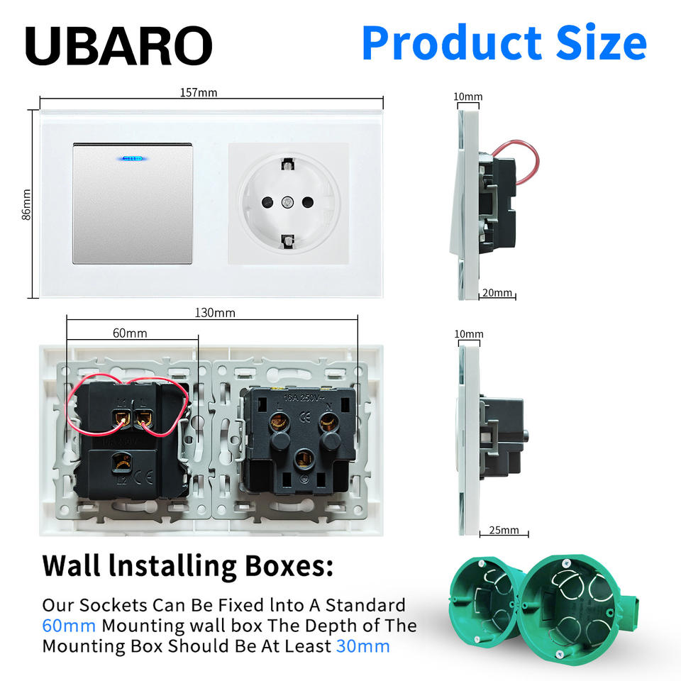 Interrupteur à bascule Ubaro et prise EU 153x82x35mm avec panneau en verre trempé pour la rénovation de la maison et du bureau