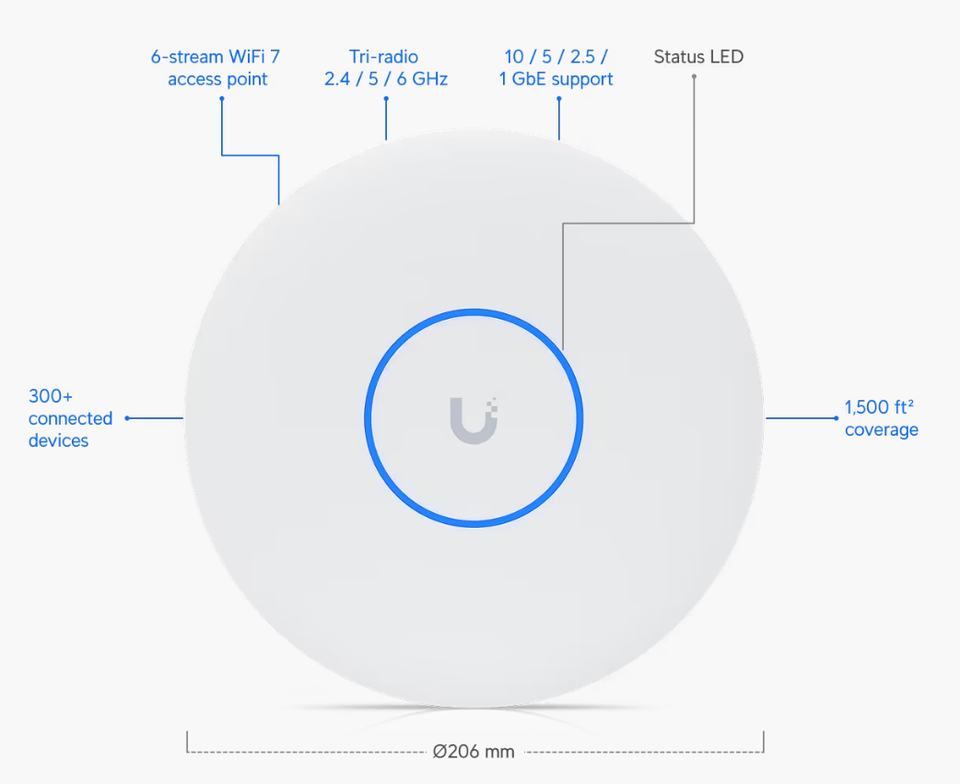 Point d'accès Wi-Fi 7 tri-bande Ubiquiti UniFi U7-Pro-XG 10G PoE++ 6 flux spatiaux AP d'entreprise