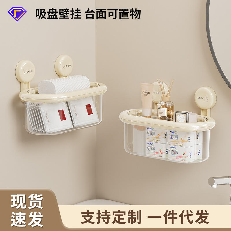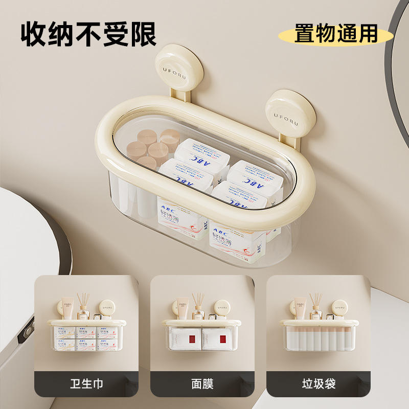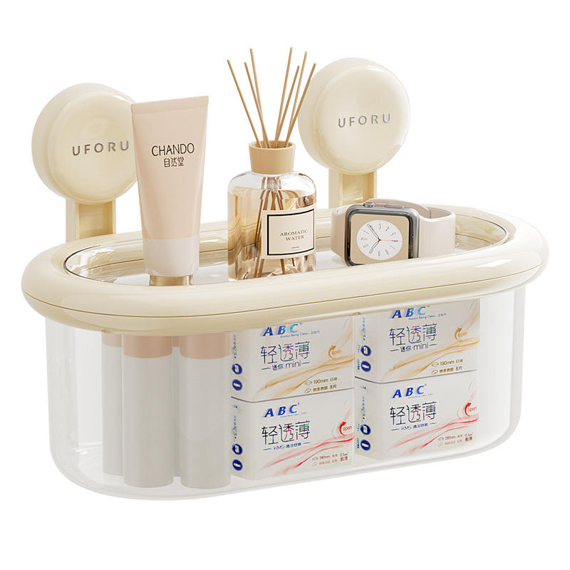 Boîte de rangement murale Uforu avec couvercle, ventouse, étagère de salle de bain, étanche, grande taille, fixation d'angle, durable