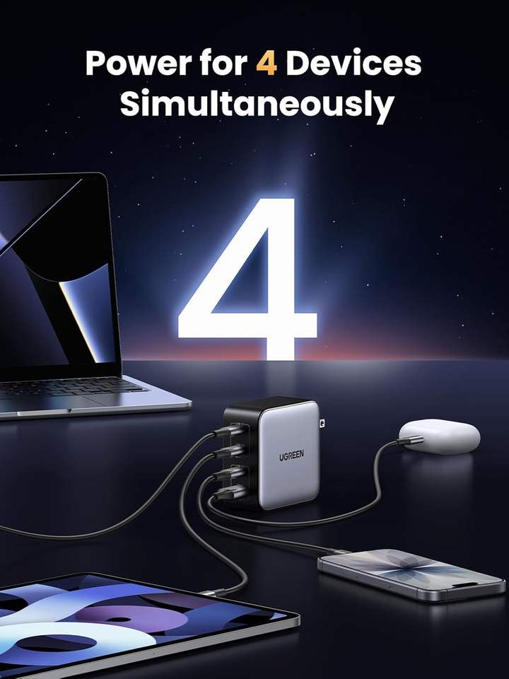 Ugreen Nexode 100W GaN USB-C 4-Port Compact Foldable Fast Charging Laptop Charger for MacBook Pro/Air iPad Pro for 17/16/15