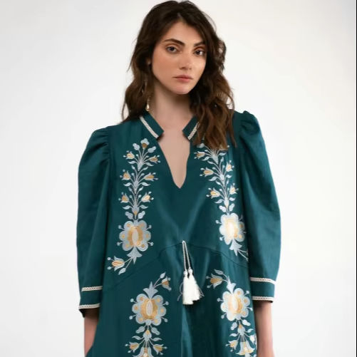 Ukraine Women V Neck Belted Evening Party Dresses Women's Wholesale Embroidered Cotton Ukrainian Dress for Women Elegant