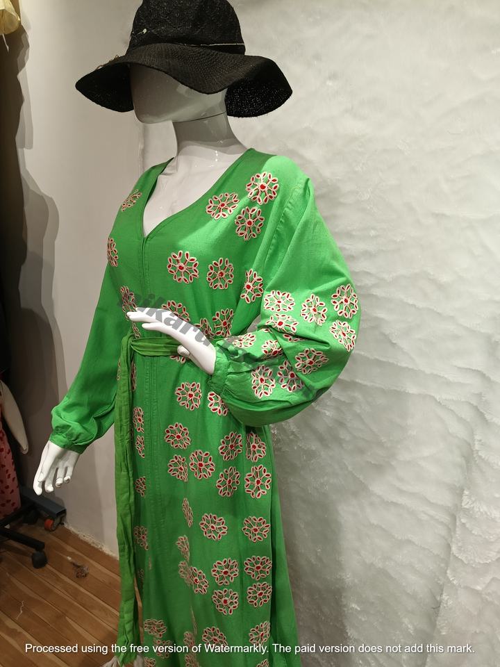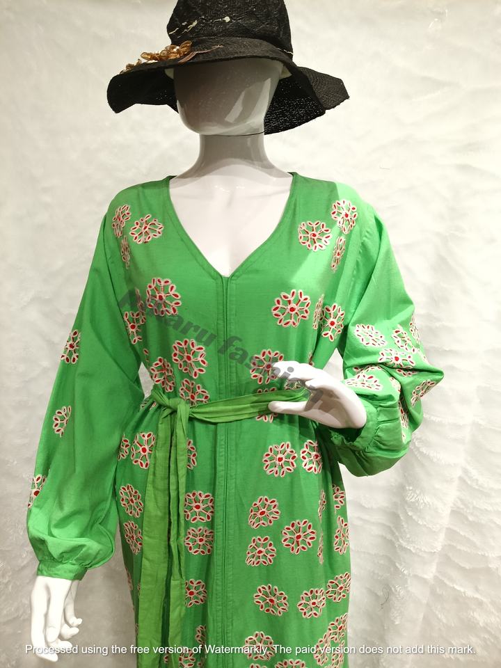 Ukrainian Embroidered Casual Dress Eco-Friendly Woven Fabric Long Puff Sleeve V-Neck Blouse Natural Waistline for Night Club