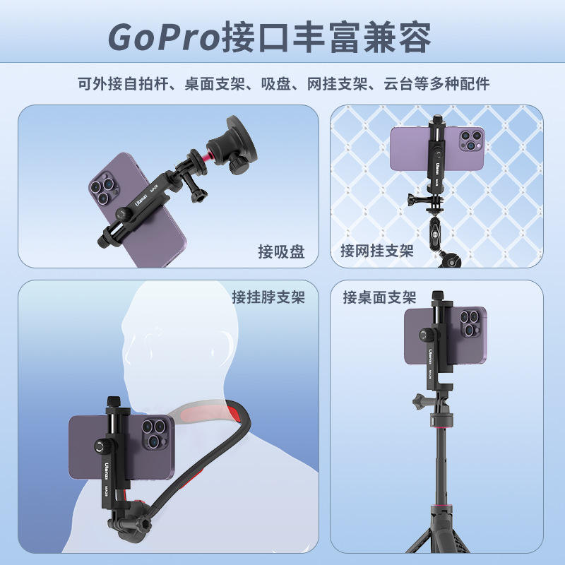 Clip de téléphone UlanziM28 avec interface GoPro pour prise de vue horizontale et verticale, support fixe pour prise de vue en vue à la troisième personne, ne