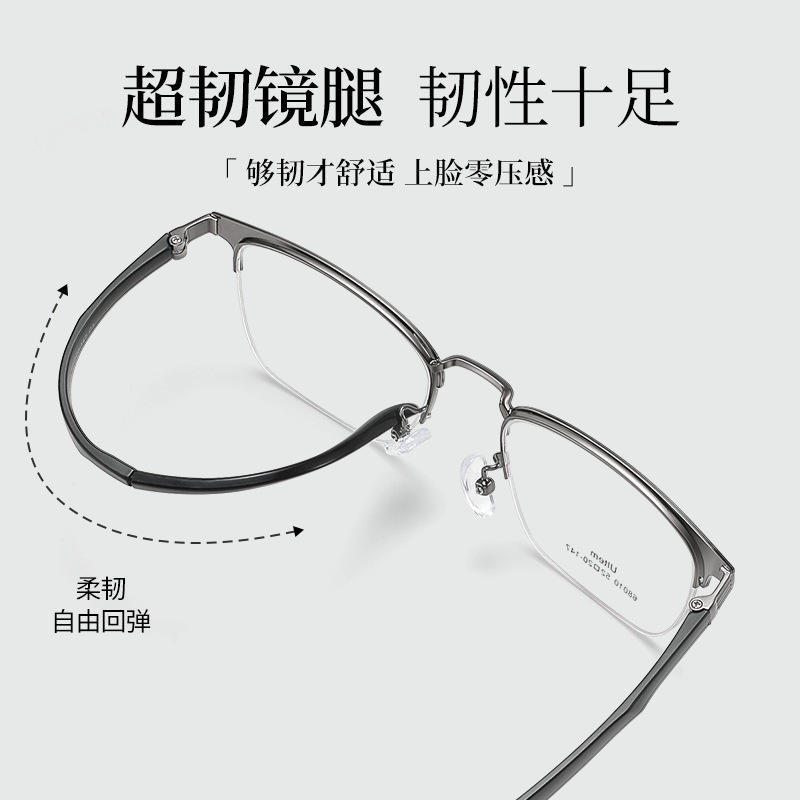 Monture de lunettes demi-cerclée Ulem Square 68010 pour hommes, protection anti-UV, style professionnel
