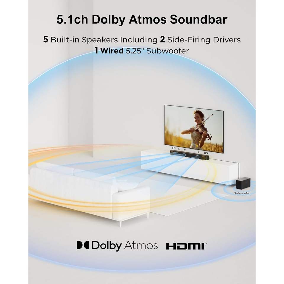 Barre de son 5.1 canaux ultime avec caisson de basses 300W pour home cinéma et consoles de jeux