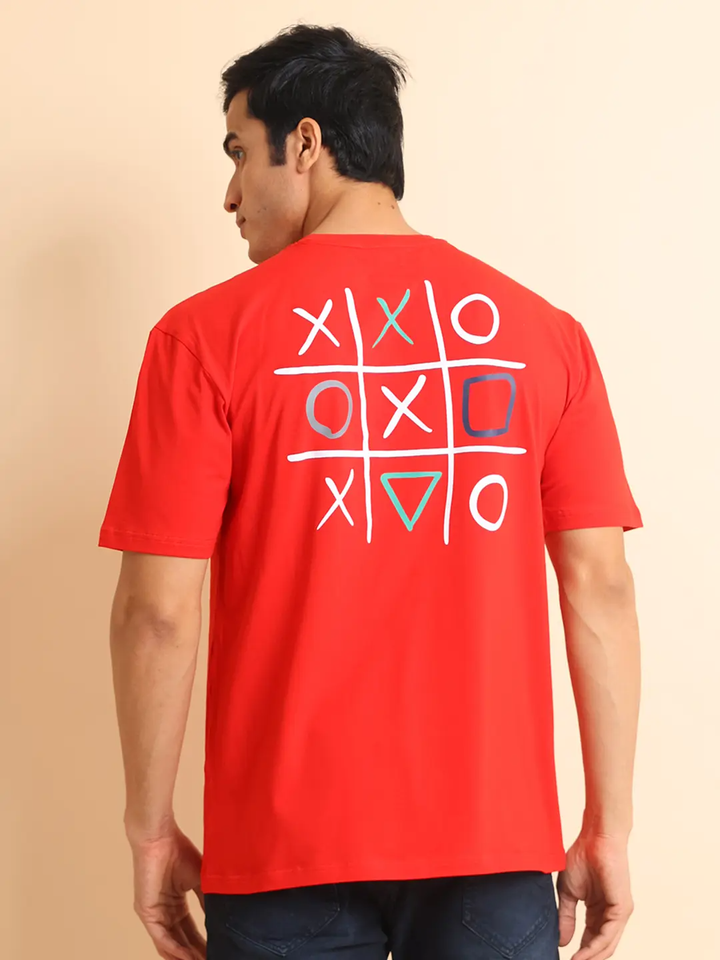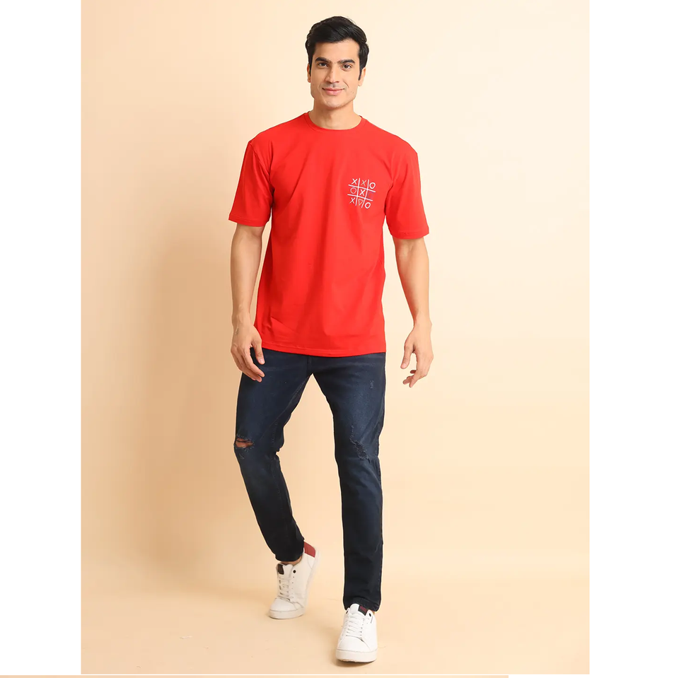 Confort et style ultimes-T-shirt à manches mi-longues col rond et extensible imprimé 100% coton rouge