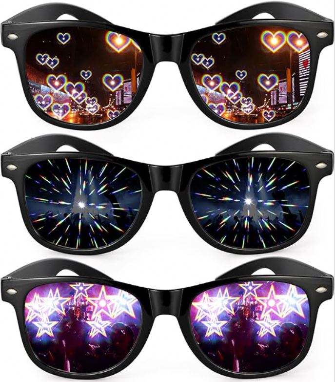 Lunettes de diffraction ultime, spectacles de lumière, effet prisme 3D, style kaléidoscope arc-en-ciel, lunettes de fête rave