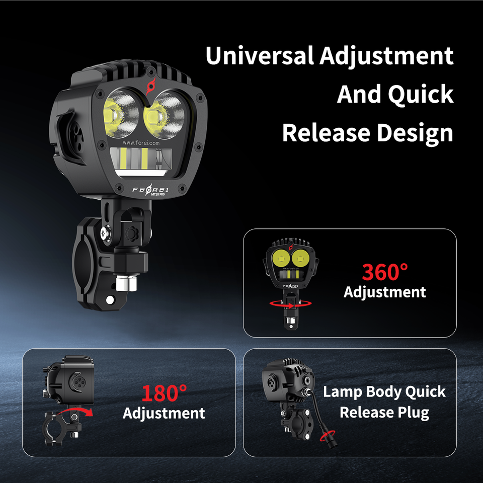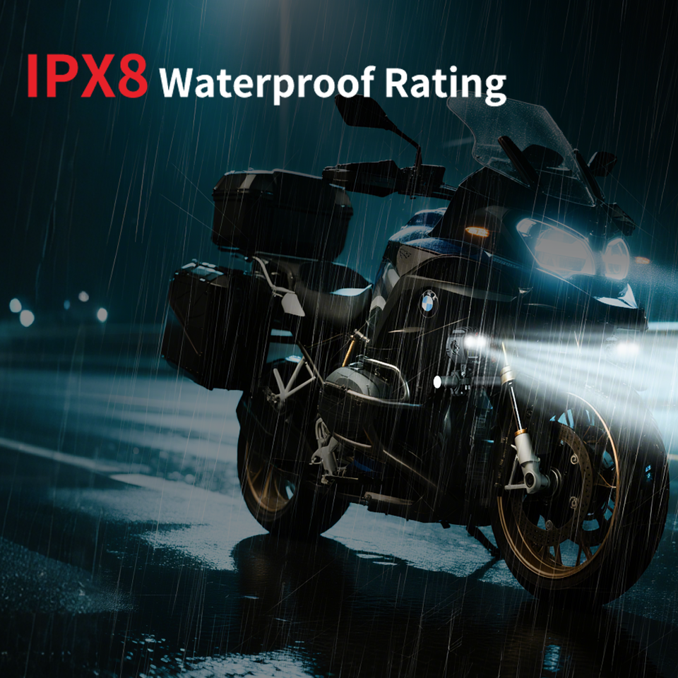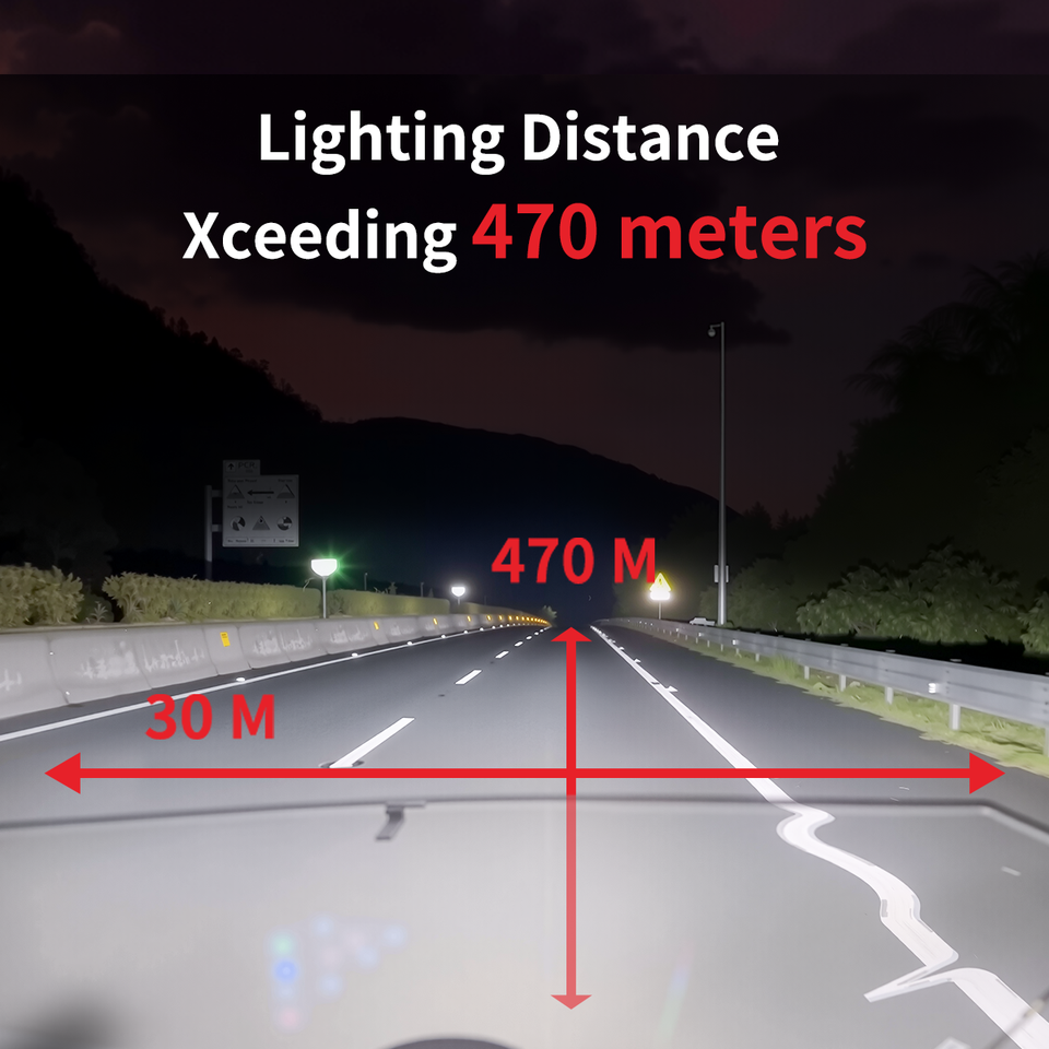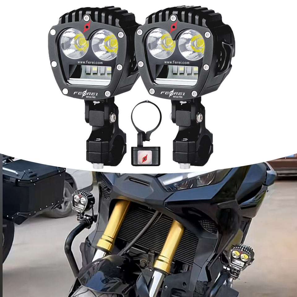 Phare de moto LED ultra-lumineux 470m+ avec télécommande sans fil, étanche IPX8, clignotant, modes haut/bas/combo/brouillard/stroboscopique Ferei