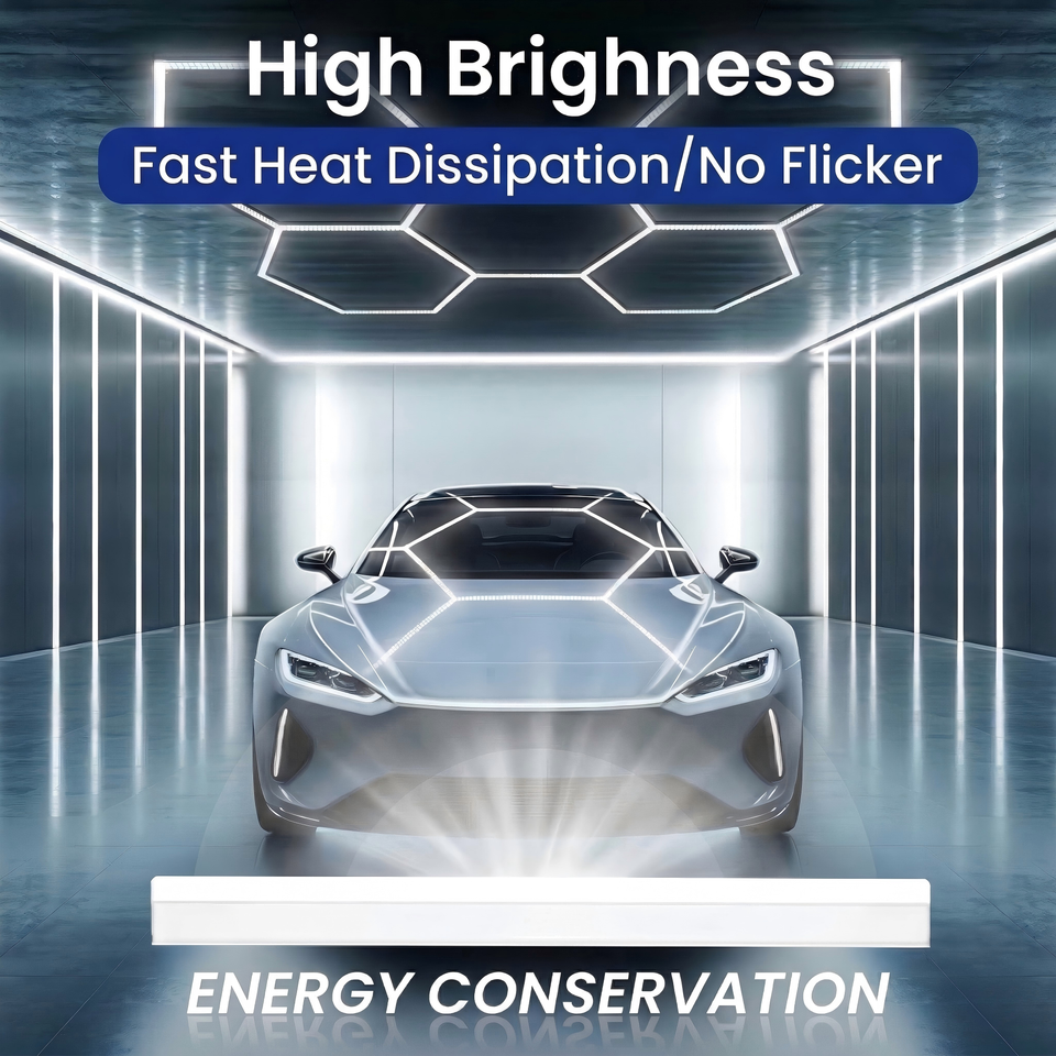 Lumière de garage hexagonale LED ultra-lumineuse, éclairage de plafond en nid d'abeille pour le detailing automobile, design connectable pour atelier, salle d'exposition, gymnase