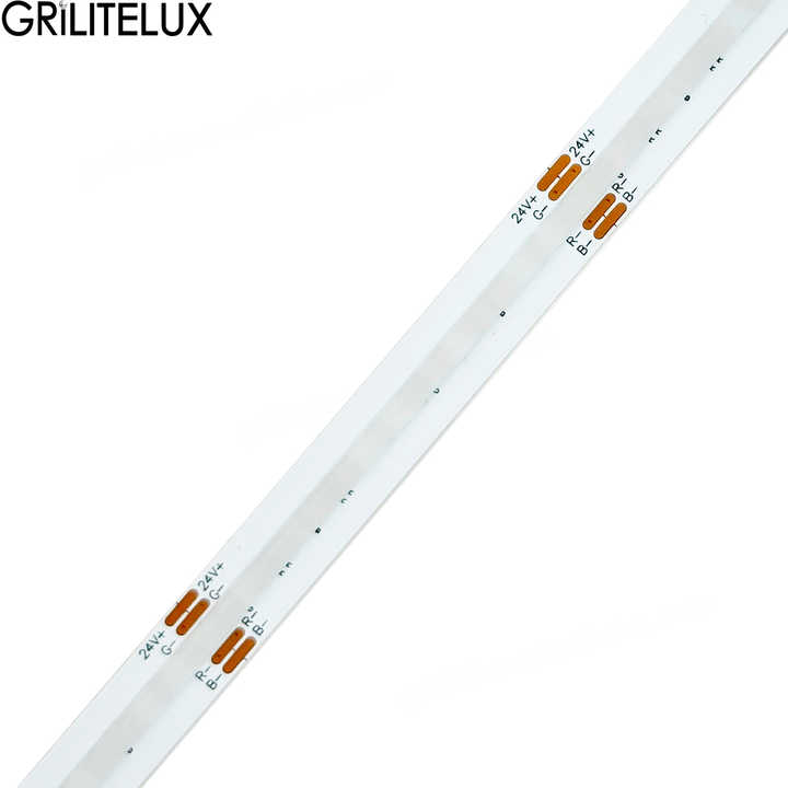 Bande LED COB RGB ultra-lumineuse, angle de faisceau de 120°, largeur de 10 mm, 576 LED/m, DC12V 24V, ruban flexible pour éclairage créatif et décoration