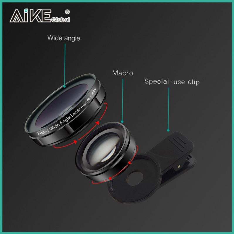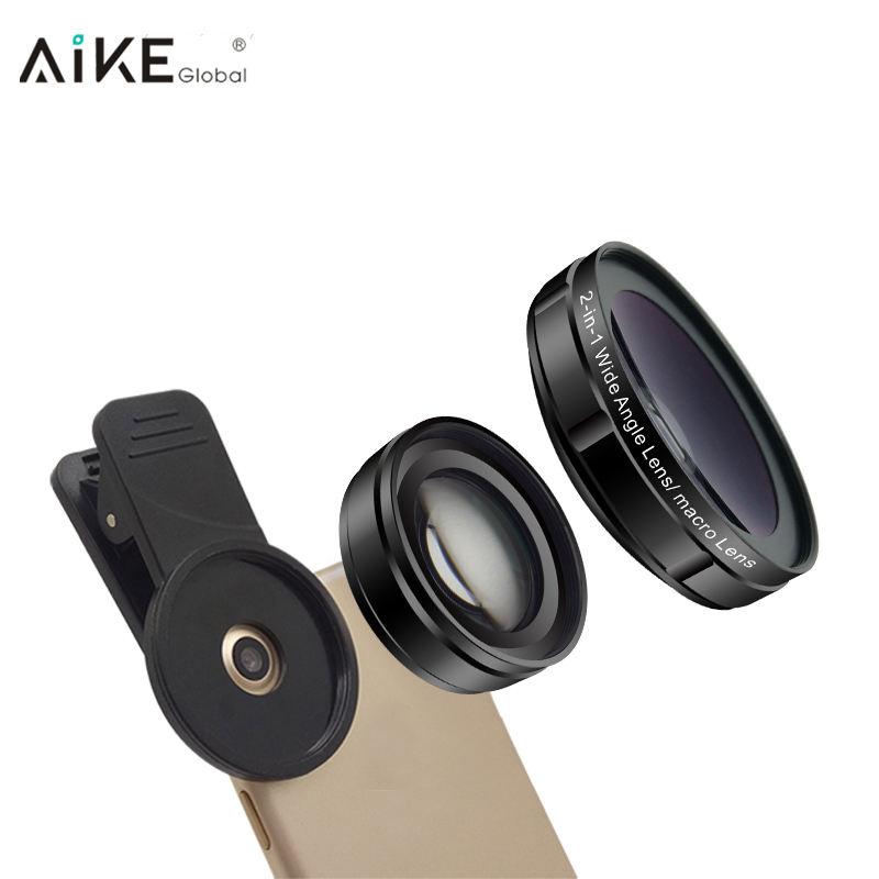 Objectif d'appareil photo pour téléphone portable ultra compact 0,45x super grand angle 15x micro 2 en 1, kit d'objectifs AF 10 lames en aluminium + verre optique F/22