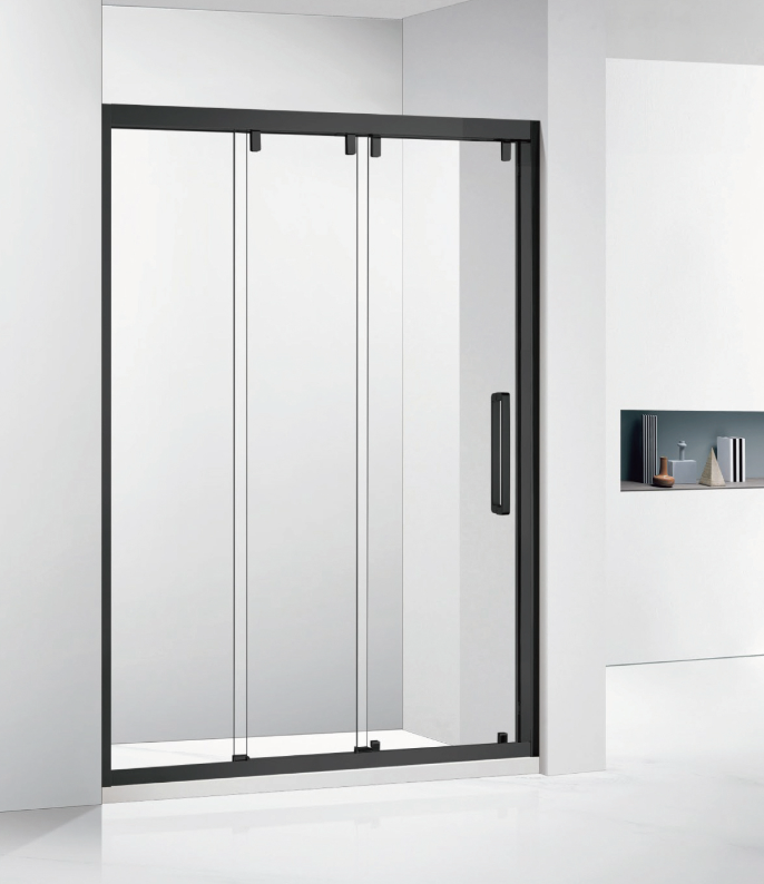 Enceinte de douche en verre coulissante à trois portes ultra-durable zéro espace au sol requis joint étanche en verre trempé pour salle de bain
