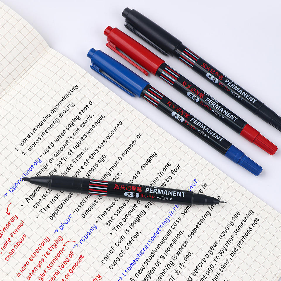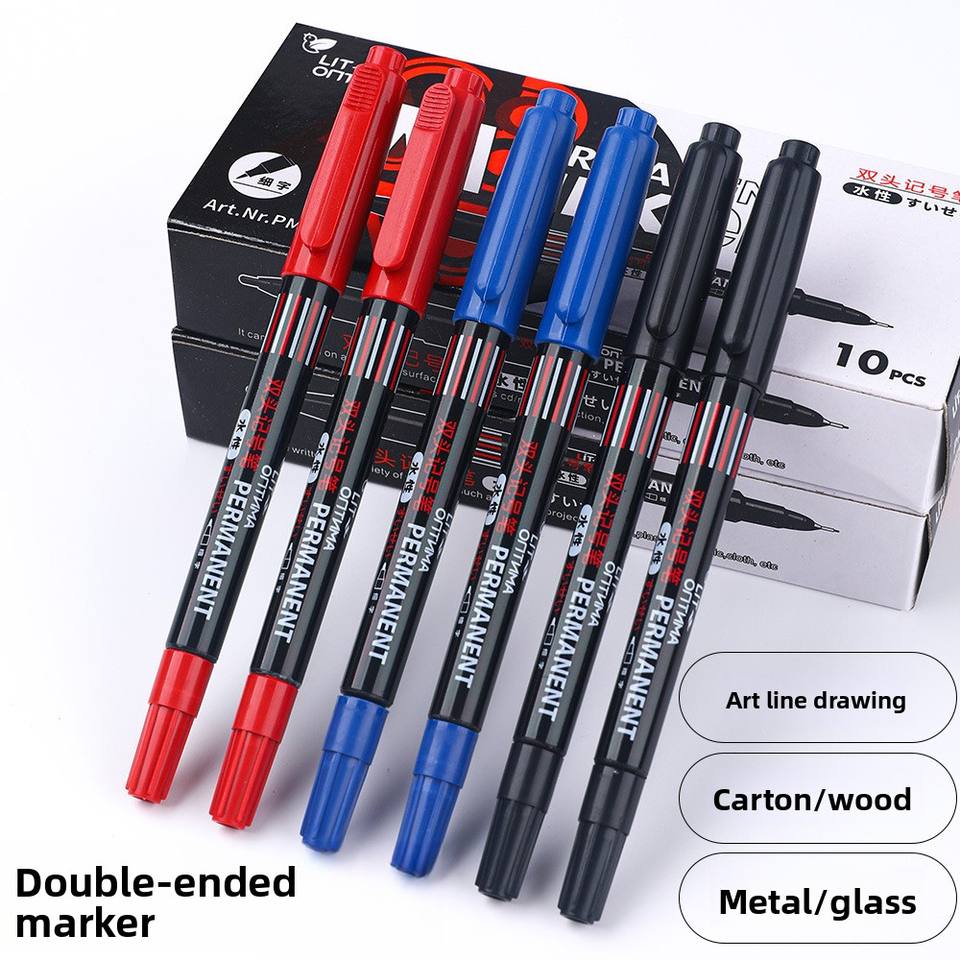 Stylo marqueur à double extrémité à base d'eau noir ultra-fin pointe de pinceau oblique en plastique 1mm encre permanente petite signature art