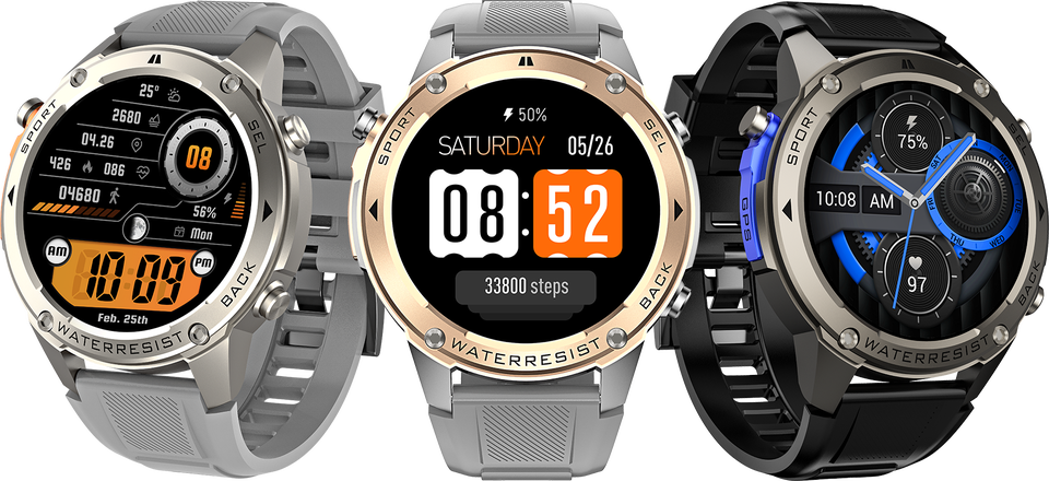 Montre connectée robuste originale DM56 avec GPS, application mobile, suivi sportif, ultra métallique, 65 jours d'autonomie, compatible Android