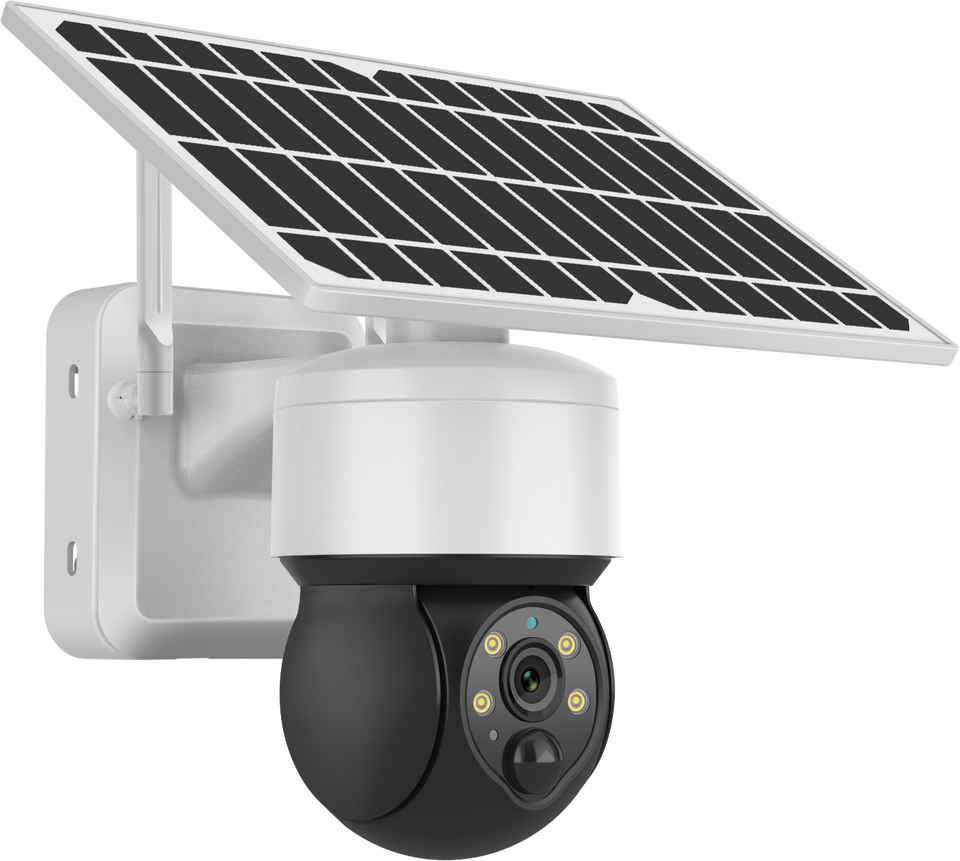 Caméra dôme grand angle à vision nocturne à panneau solaire Ultra HD 5W Système de détection PIR IP66 de grande capacité Capteur CMOS panoramique et inclinable