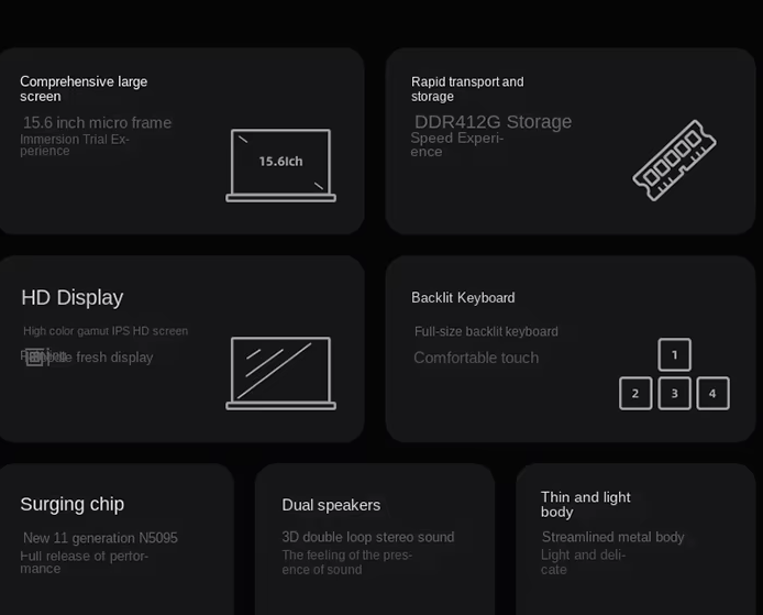 Ordinateur portable haut de gamme 15,6 pouces grand écran N95, écran haute définition, excellent rapport qualité-prix, déverrouillage par empreinte digitale, Windows 11