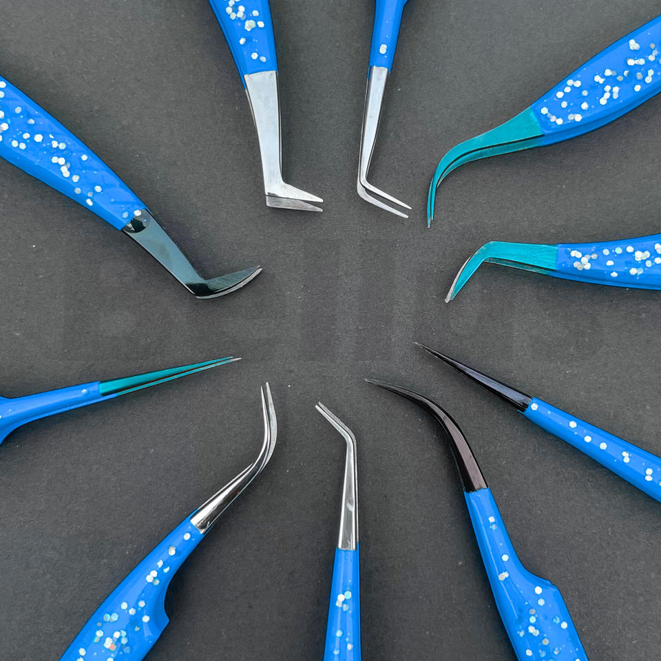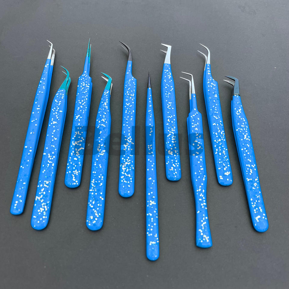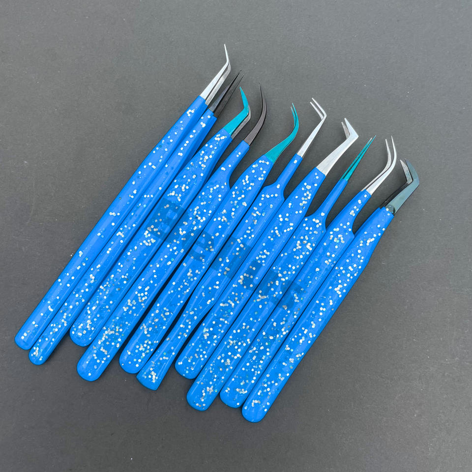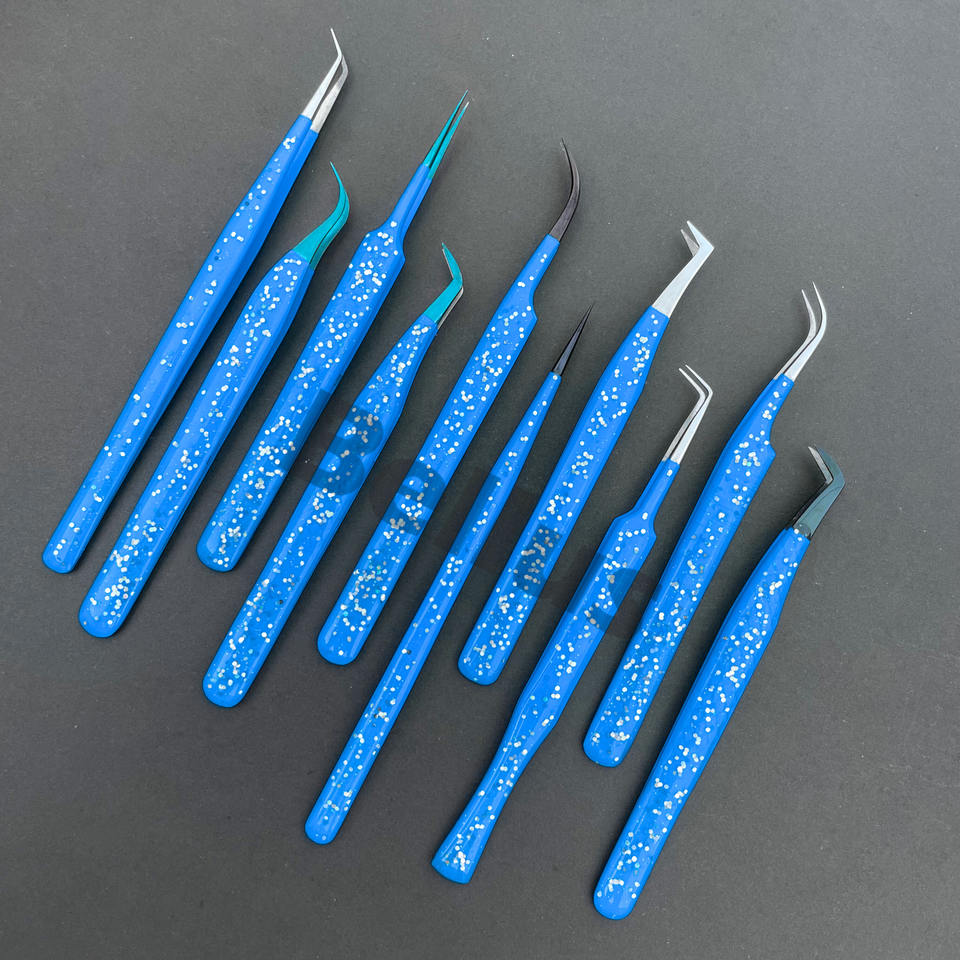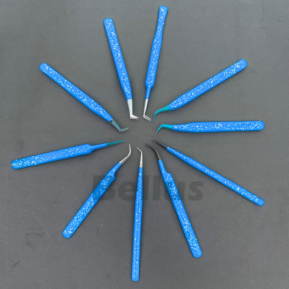Pince à cils Volume ultra russe Pointe durable en acier inoxydable enduite de couleur personnalisée pour extensions de cils Marque privée prête