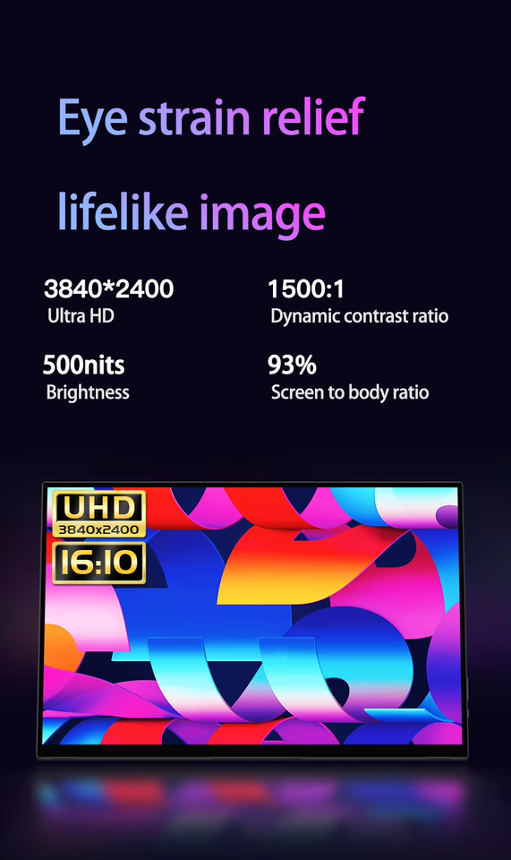 Moniteur portable Ultra Slim 16 pouces 4K 400nits deuxième écran OLED léger pour bureau/jeu faible lumière bleue