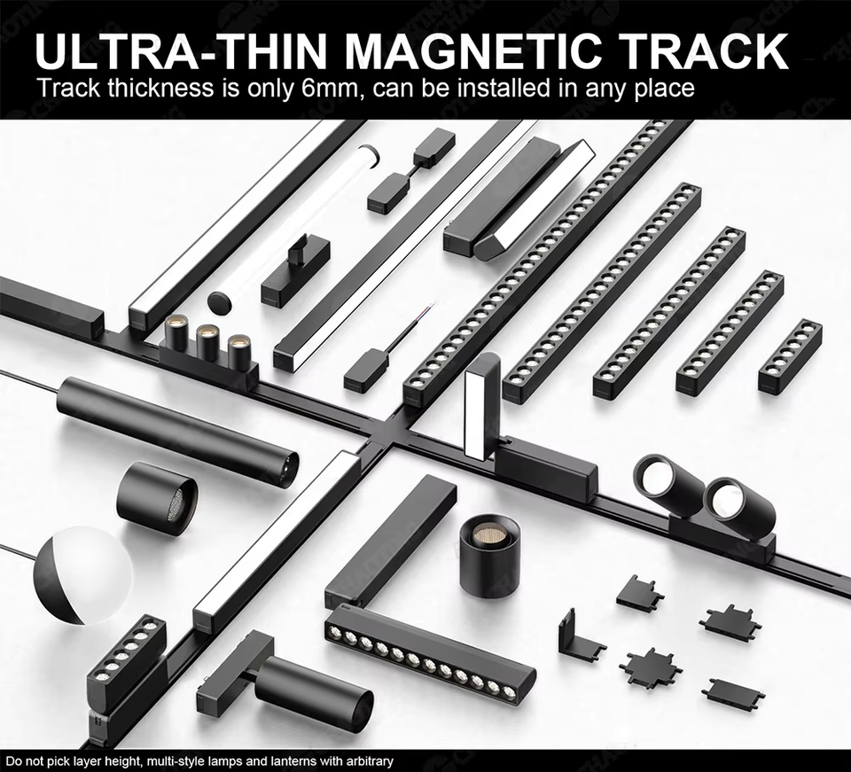 Rail lumineux magnétique ultra fin, spot lumineux magnétique, projecteur LED magnétique, luminaire encastré en surface, luminaire magnétique suspendu