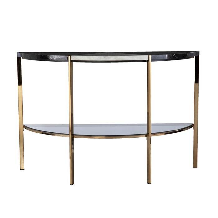 Table console pliable ultra-mince moderne avec cadre en fer et bord en dalle de roche, meuble d'entrée peu encombrant pour maisons compactes
