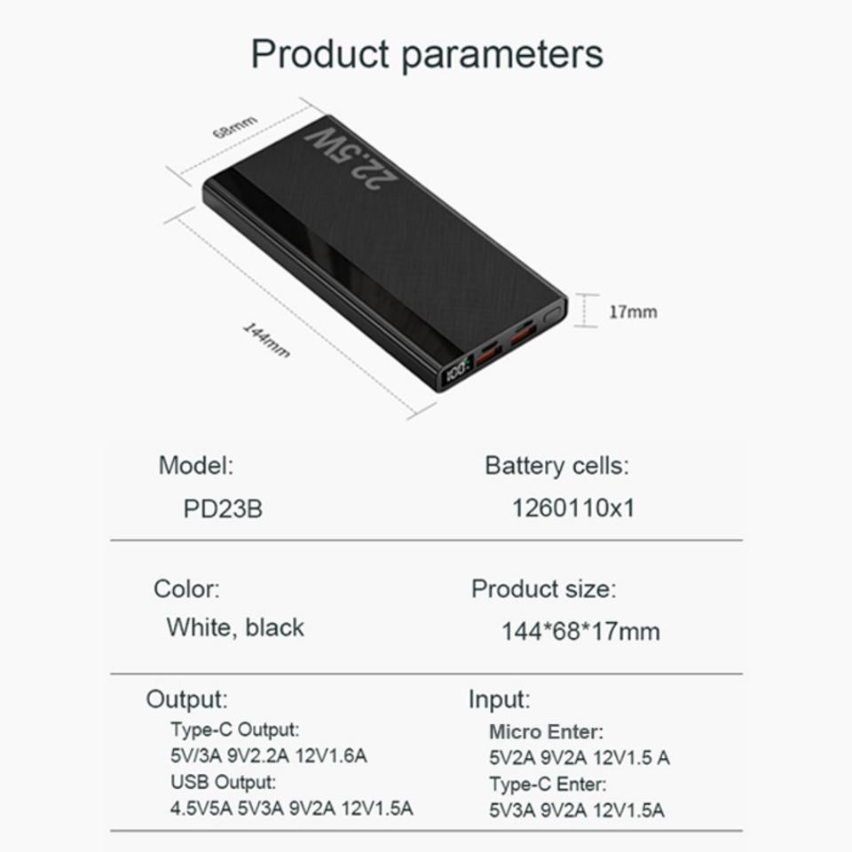 Nom du produit:Banque d'alimentation 10000MAH PD22.5W charge rapide