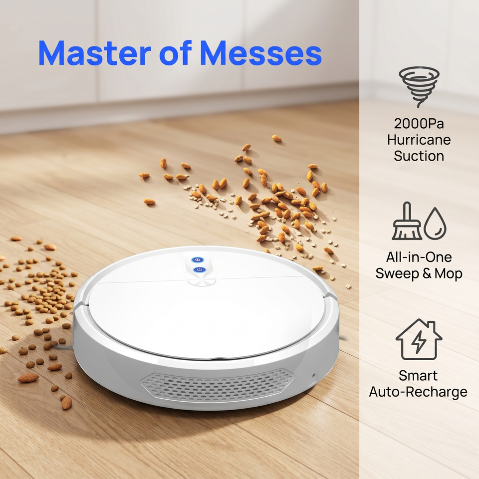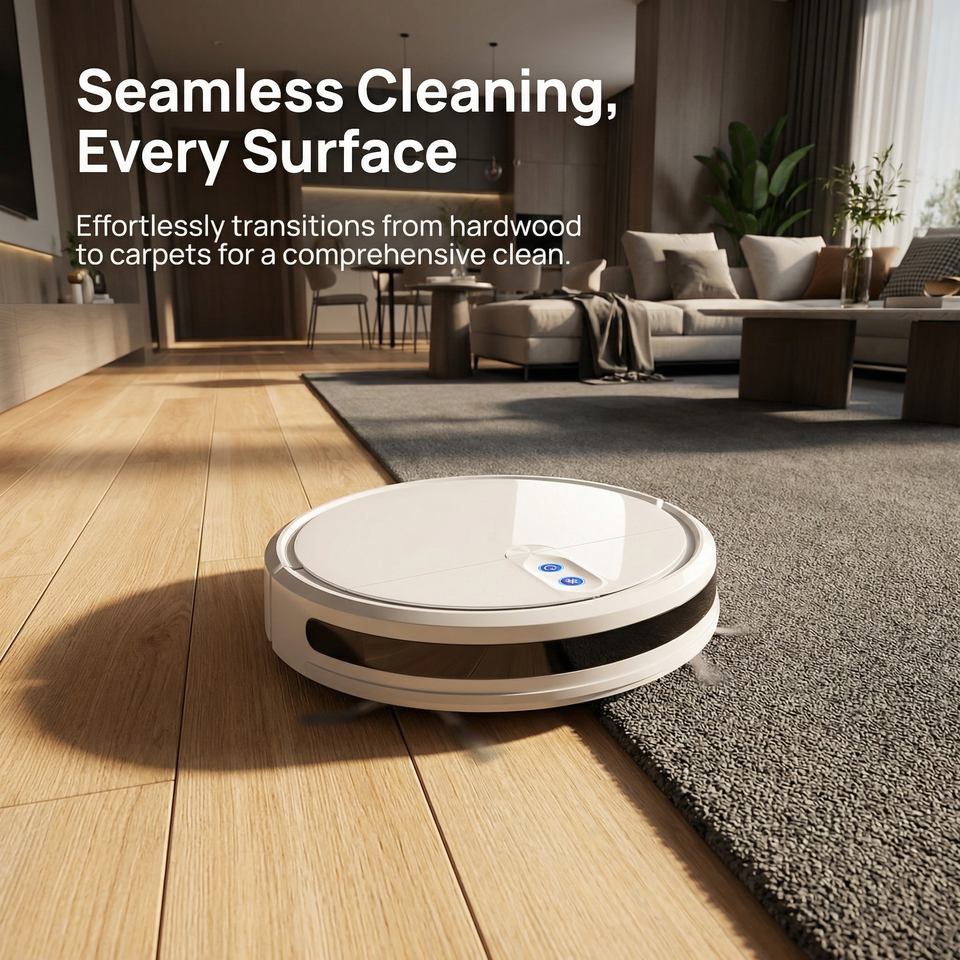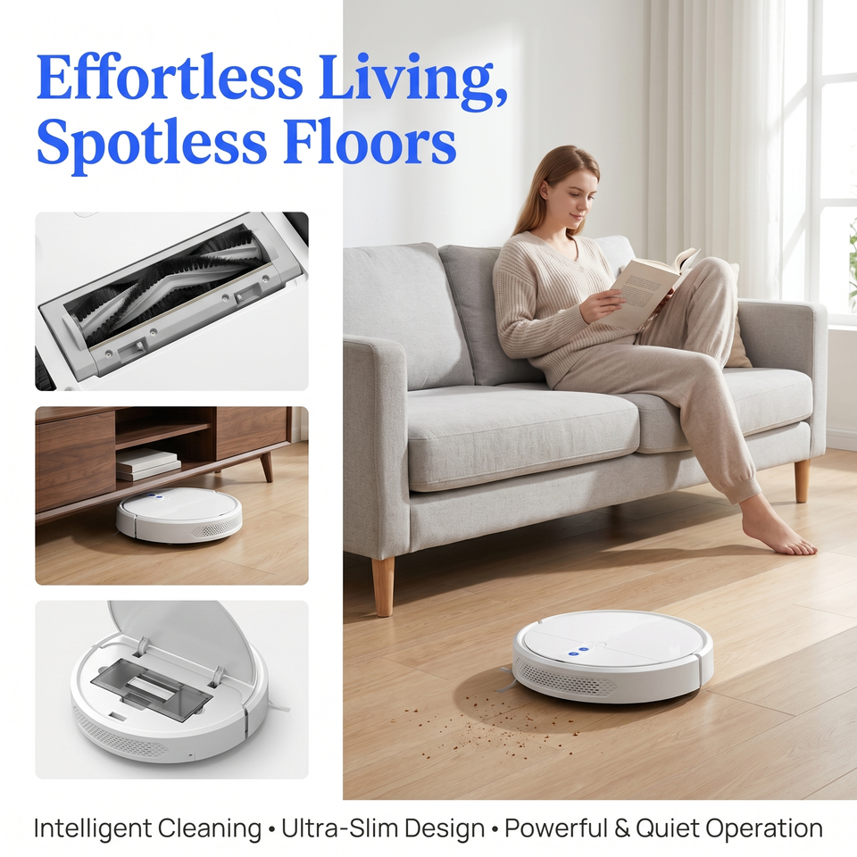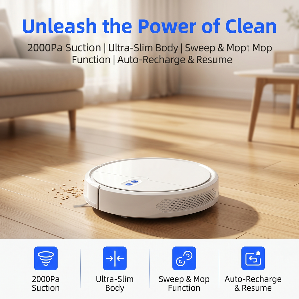 Aspirateur robot intelligent ultra-mince avec recharge et reprise automatiques, robot 2-en-1 pour balayer et nettoyer les sols, les poils d'animaux, pour usage domestique