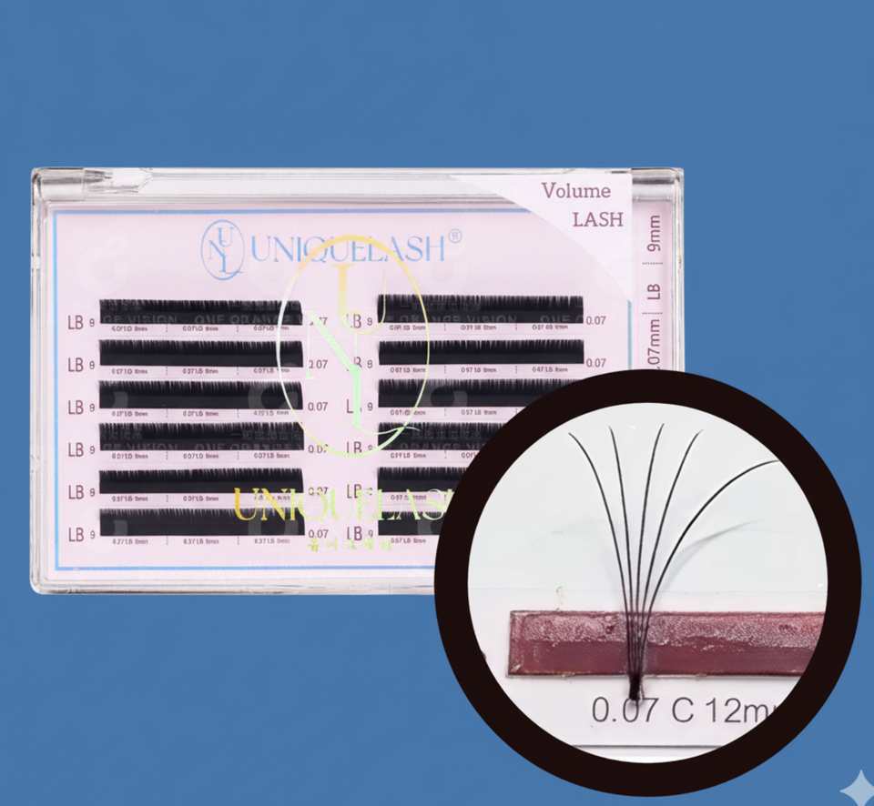 Cils coréens UNIQUE LASH Mega Volume Ultra Soft 0,07 mm J JC C CC LB LC Noir mat Premium PBT Russie