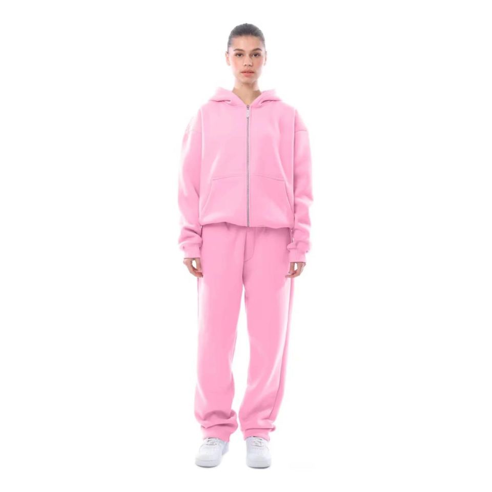 Survêtement ultra doux et surdimensionné pour femmes, sweat à capuche zippé sur mesure, jogging, coton mélangé de haute qualité, coupe sportive décontractée