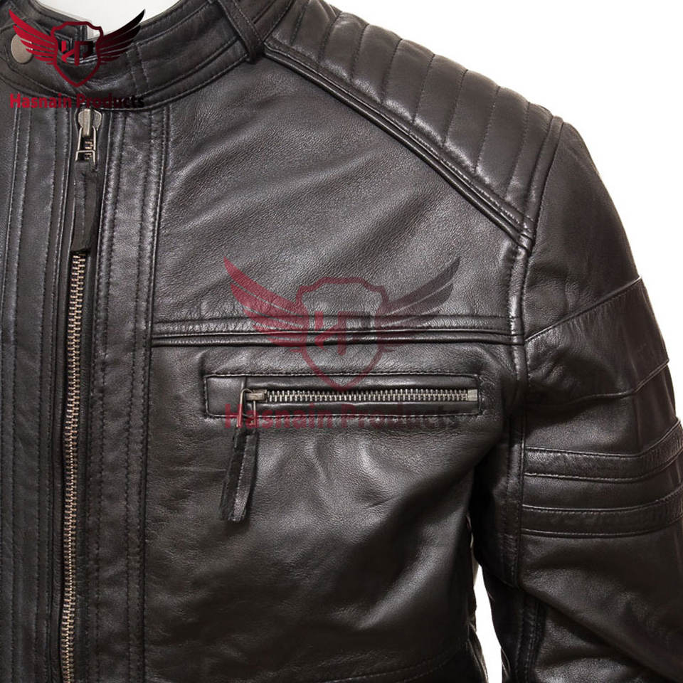 Veste de motard en peau de mouton ultra douce pour homme Design classique en cuir noir Ceinture réglable Poches zippées Style High Street
