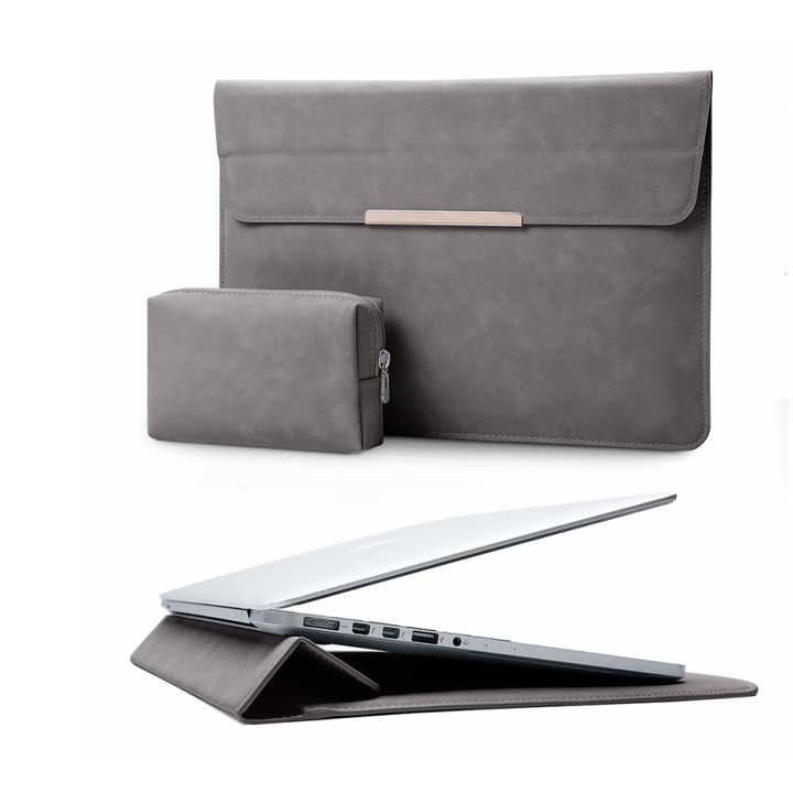 Étui pour ordinateur portable ultra fin de 13.3 à 14 pouces étui à fermeture magnétique en simili cuir suédé avec petite pochette pour tablette