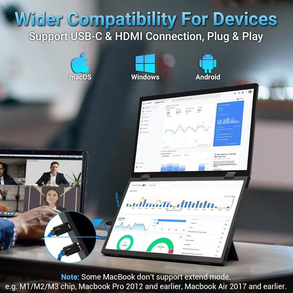 Écran portable ultra-fin de 15,6 pouces à double écran pliable, écran IPS Full HD 1080p, moniteur ultra-fin avec 360 ° Rotatif