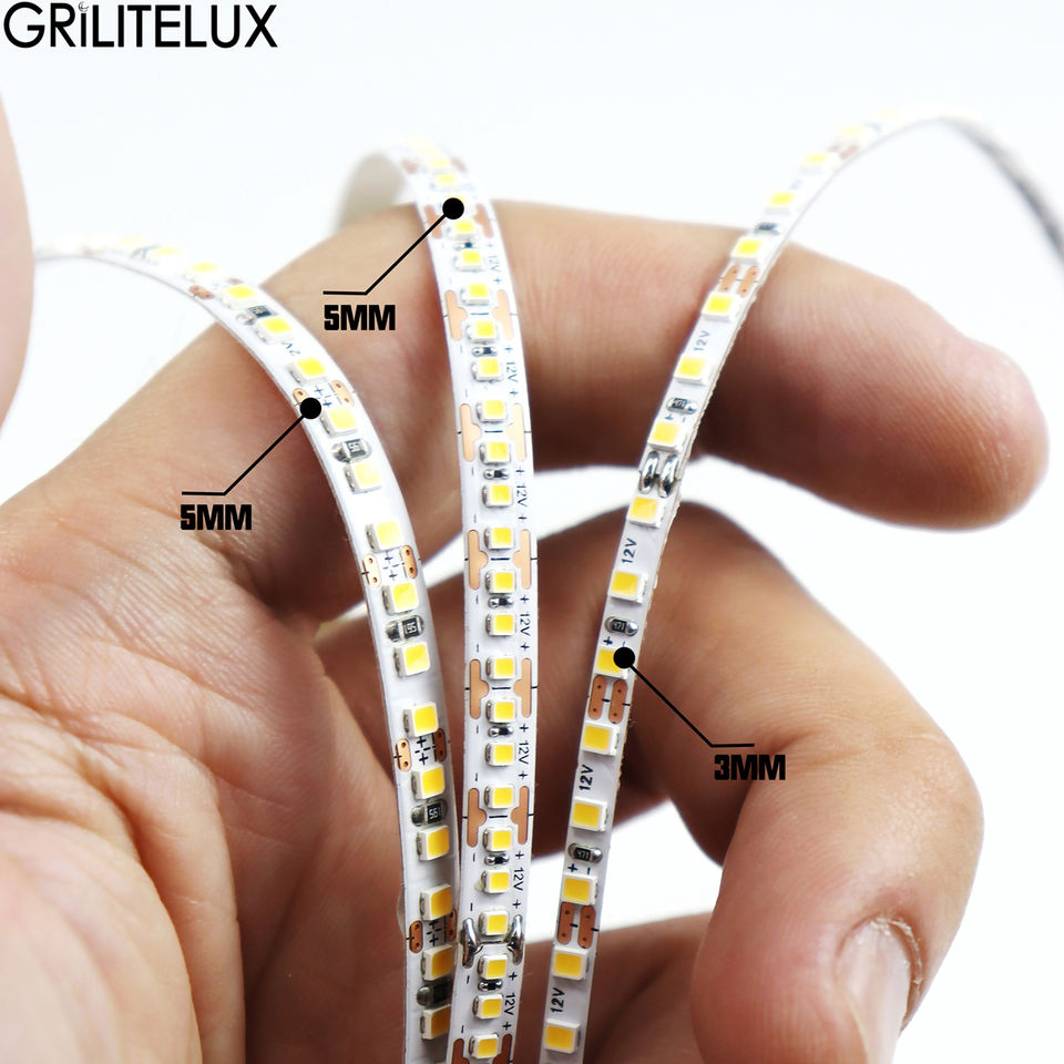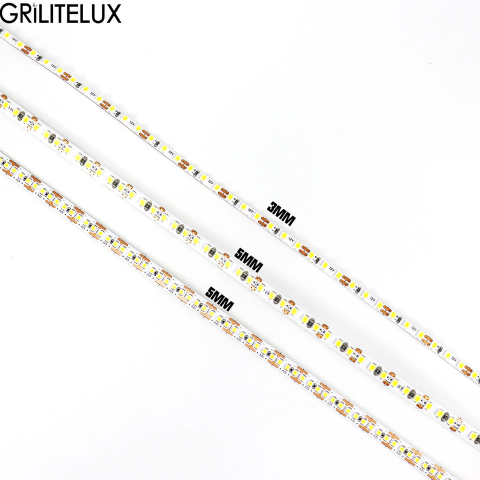 Bande lumineuse LED flexible ultra-fine 3/4/5 mm PCB 168 LED SMD2835 DC12V, découpe 17,86 mm, haute luminosité, pour armoire