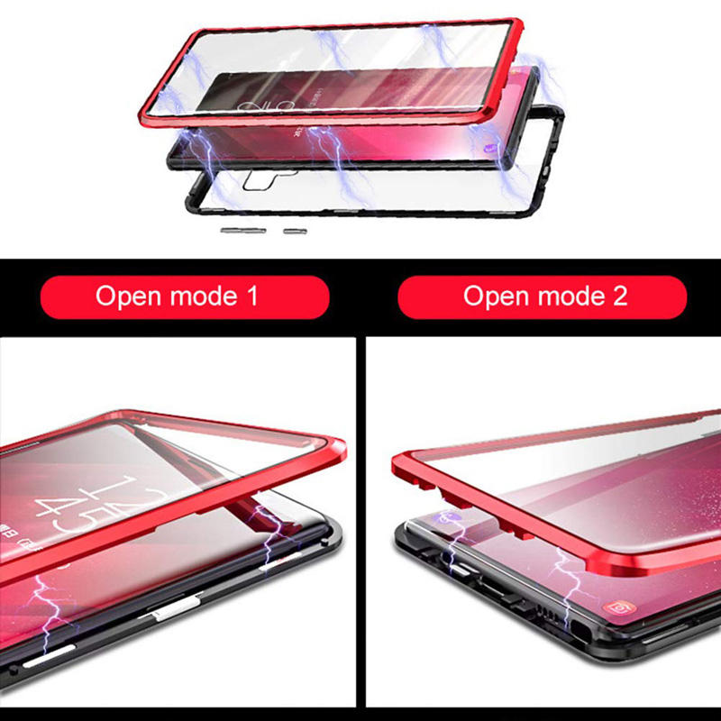 Coque en verre trempé 360 ultra fine avec double face 9H pour Samsung Note 9 et coque à absorption magnétique