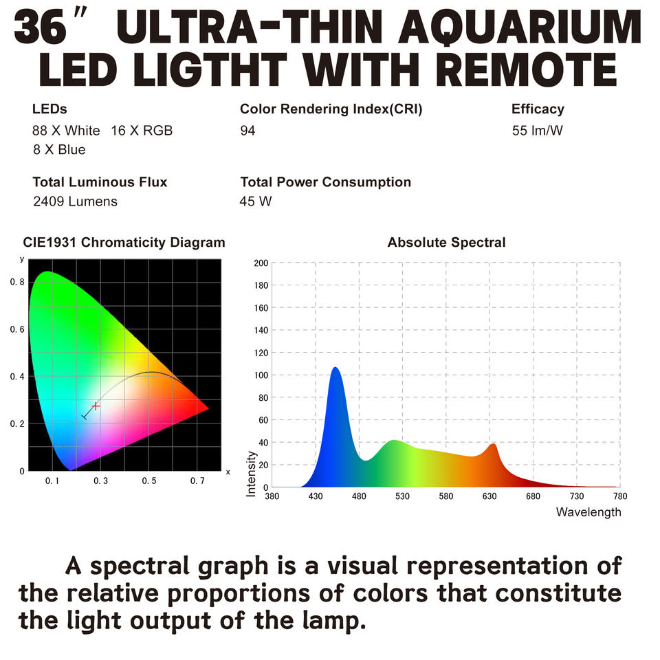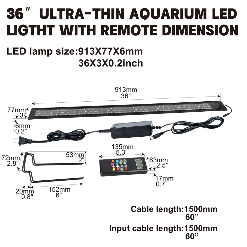 Lampe LED ultra-fine pour aquarium avec télécommande, pour aquarium de 36 à 42 pouces, lampe LED pour eau de mer avec télécommande