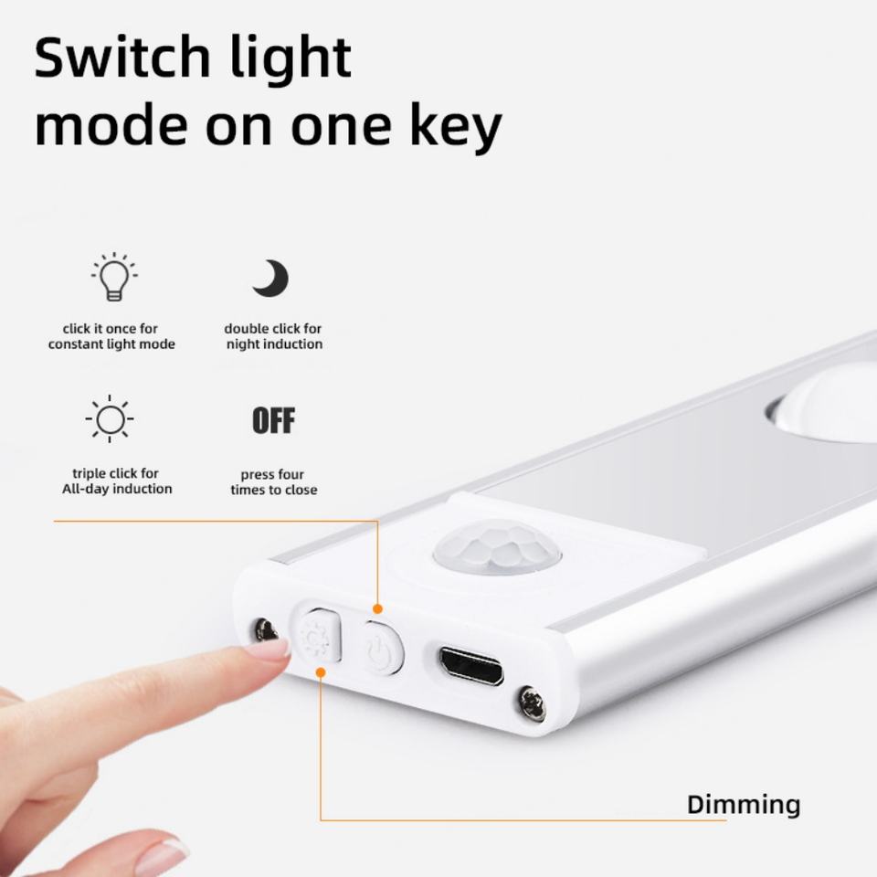 Lampe LED rechargeable ultra-mince à 3 couleurs et à intensité variable avec détecteur de mouvement pour armoire, placard et vestiaire