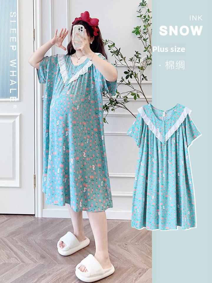 Ultra-Thin Cotton Maternity Dress Plus Size Floral Pattern Short Sleeve Nightgown for Women Summer Loose Fit