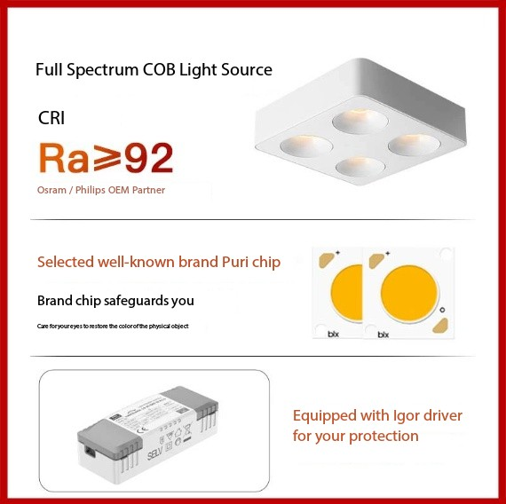 Tube lumineux transparent anti-éblouissement à spectre complet ultra-fin, salon chambre à coucher intelligent à quatre têtes carrées
