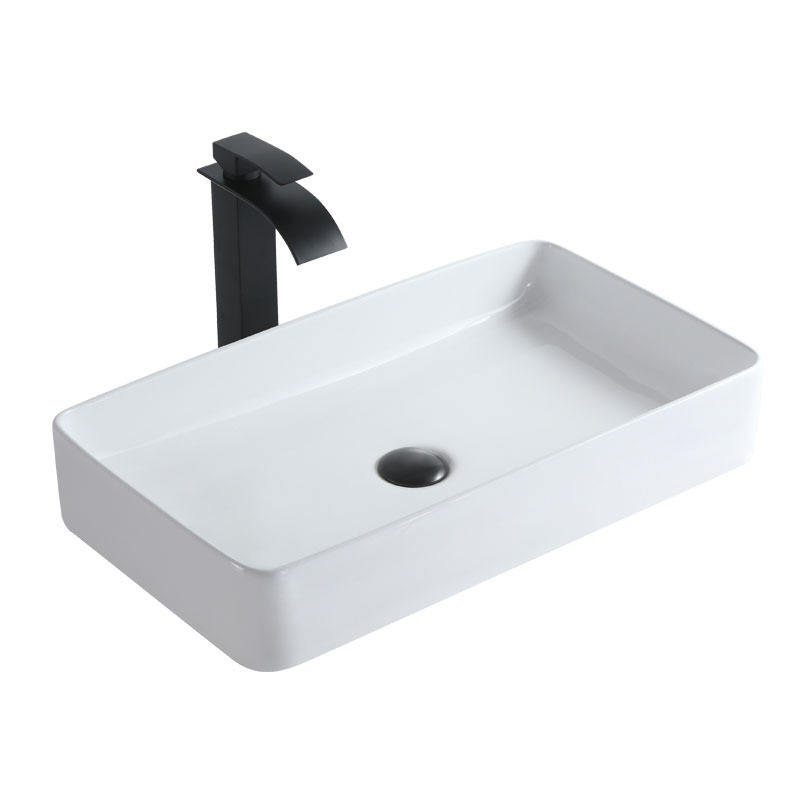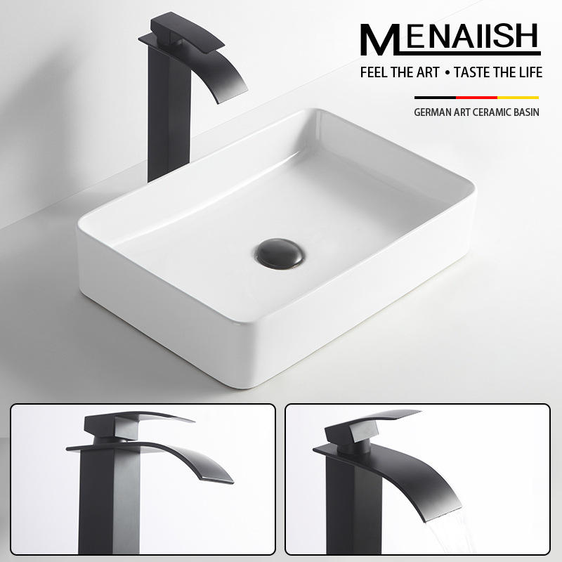 Vasque de comptoir rectangulaire ultra-mince à montage monotrou, finition émaillée lisse, pour salle de bain et balcon