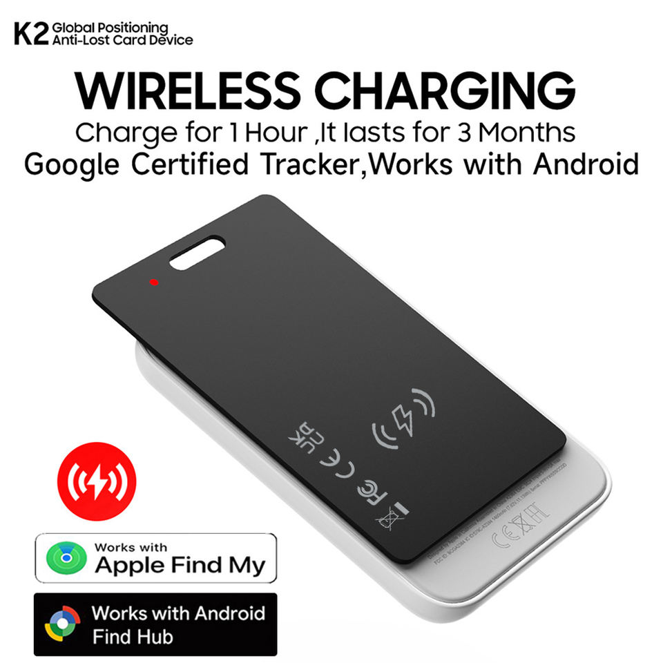 Carte de Localisation Rechargeable Ultra-Mince Universelle Double Système GPS pour Portefeuille, Compatible Apple et Android