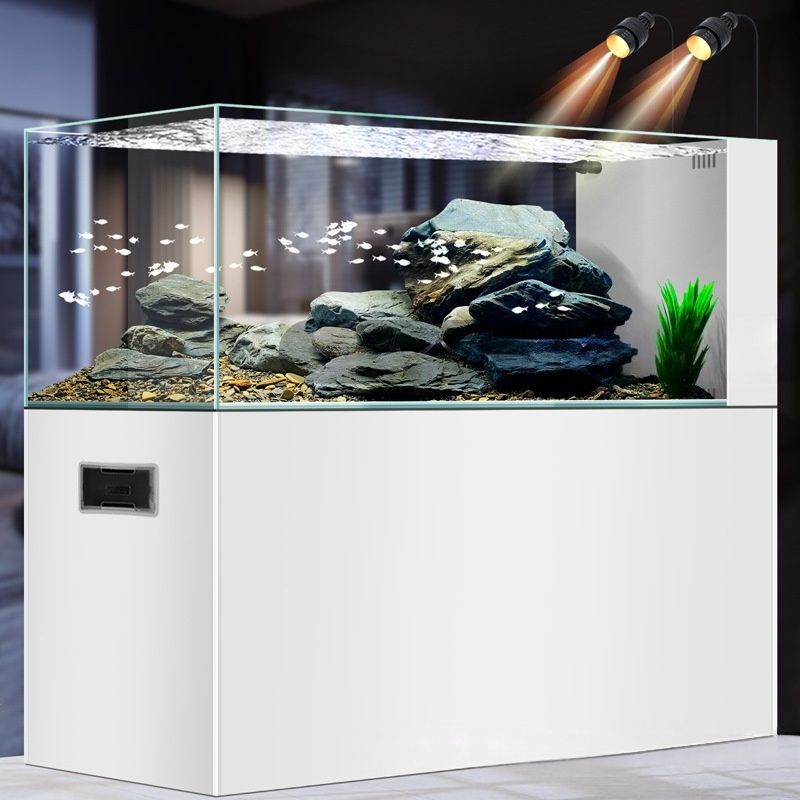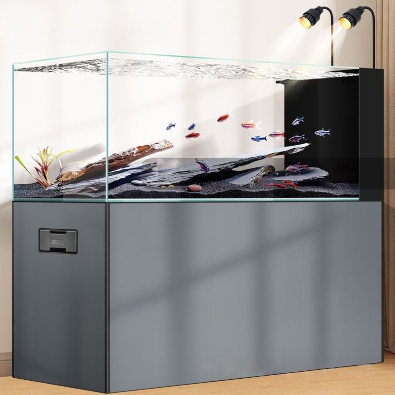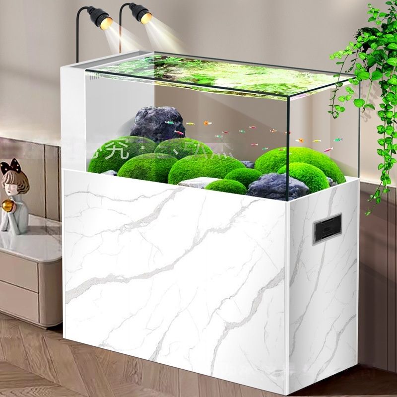Aquarium LED en verre ultra-blanc avec drainage à un clic, forme rectangulaire, économie d'énergie et respectueux de l'environnement, pour salon