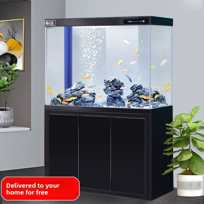 Aquarium sur pied ultra-transparent pour salon, filtre inférieur, pas de vidange de l'eau nécessaire, aquarium pour poissons rouges, aquascape inclus