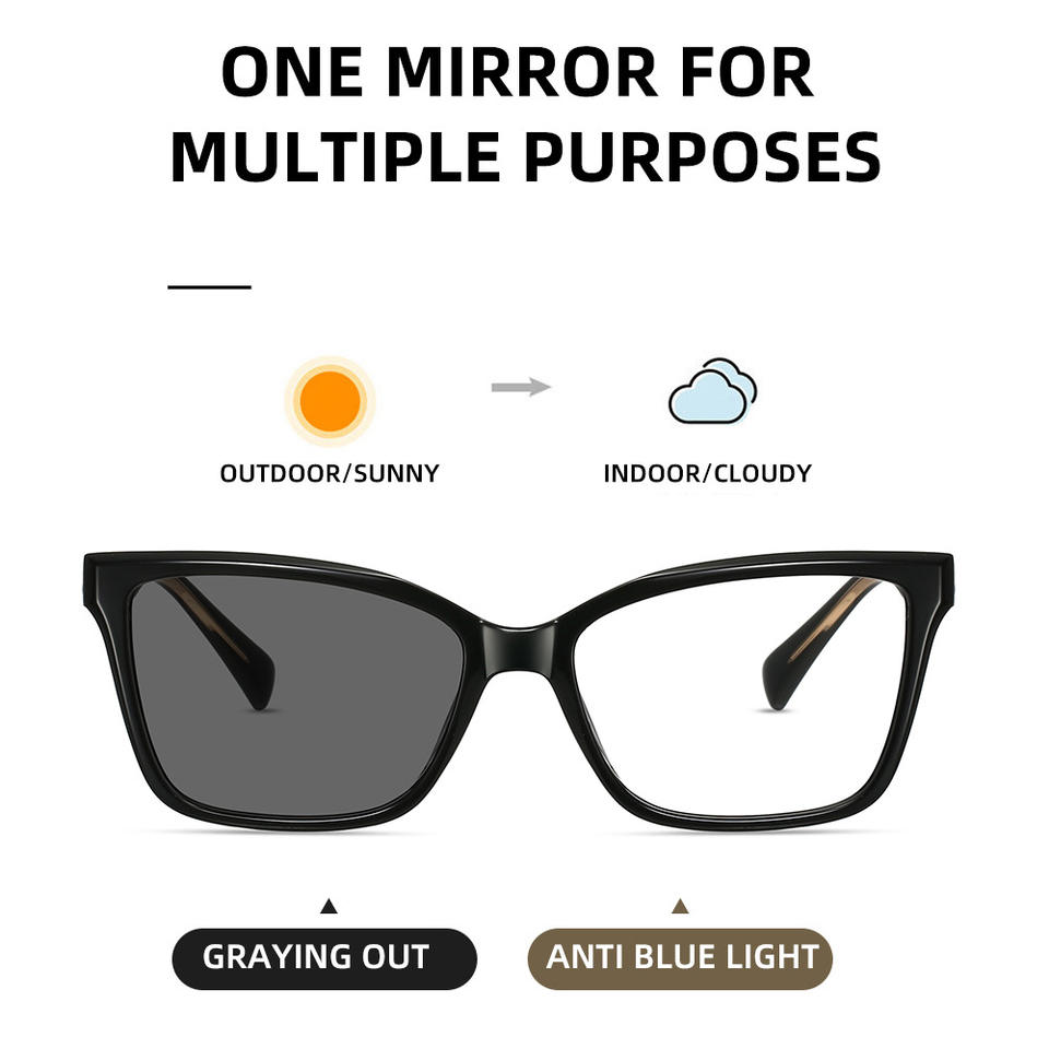 Monture optique ultra-légère TR90, lunettes photochromiques, monture large tendance, verres plats anti-lumière bleue naturels pour femmes