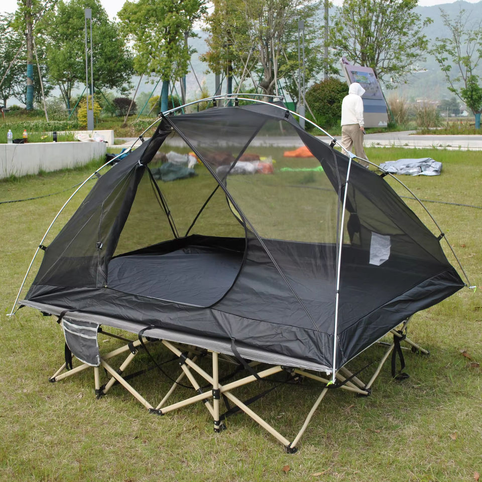 Tente de camping ultralégère et respirante à double couche pour 2 personnes, avec lit de camp et équipement de vélo, idéale pour l'été