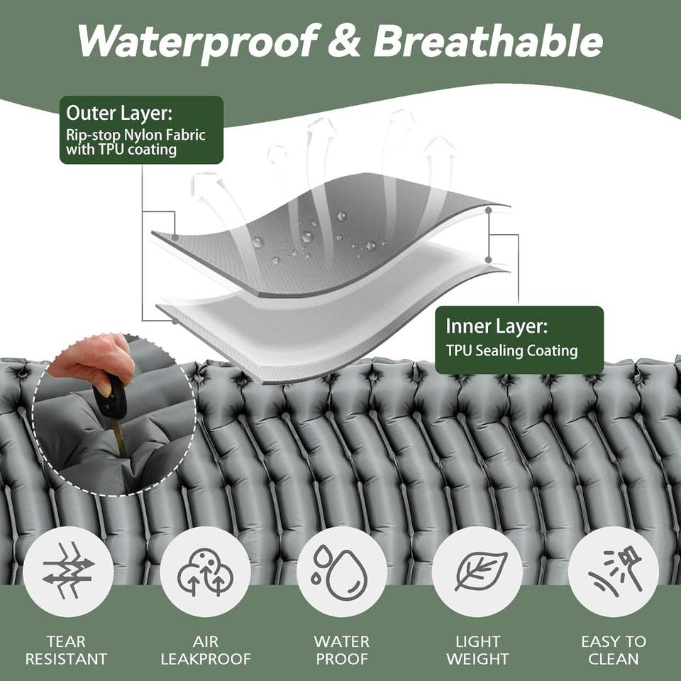 Dispositif:Imperméable, Hydrofuge, Self-Inflating,Built-In Pillow,Lightweight,Compact,Ergonomic Design, Ergonomics, Léger