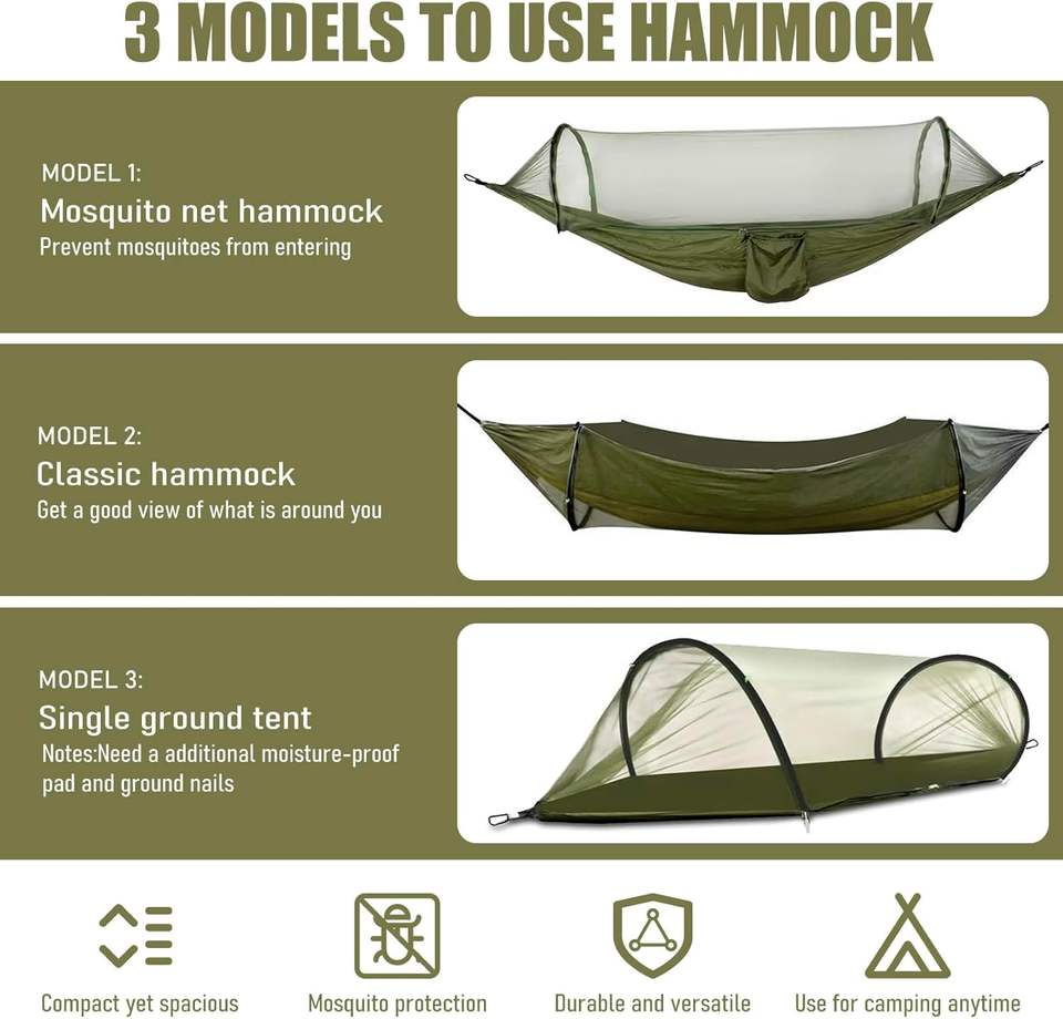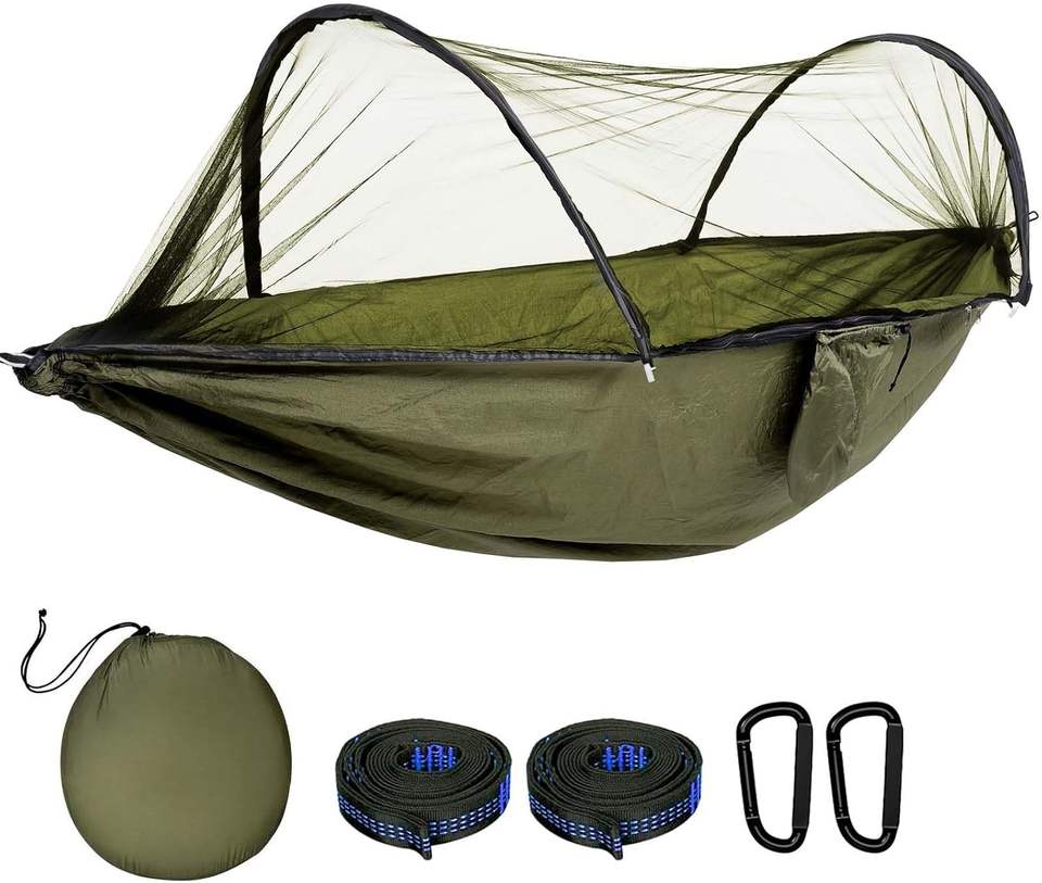 Hamac de camping ultraléger avec moustiquaire et sangles de fixation rapide pour la randonnée, les voyages et le jardin