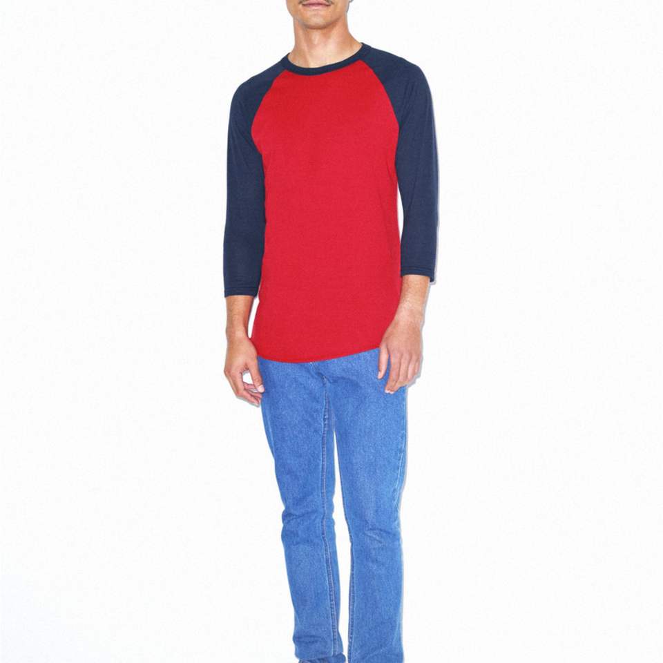 Ultrasoft 50% Coton 50% Polyester 200 gsm Slim Fit Léger Rouge et Marine Baseball Raglan 3/4 Manches T-Shirt